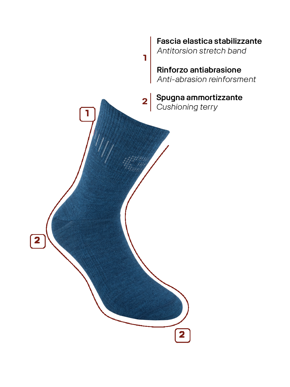 - Anti-vesciche: fascia elastica stabilizzante e cuciture piatte evitano lo sfregamento nei punti sensibili.