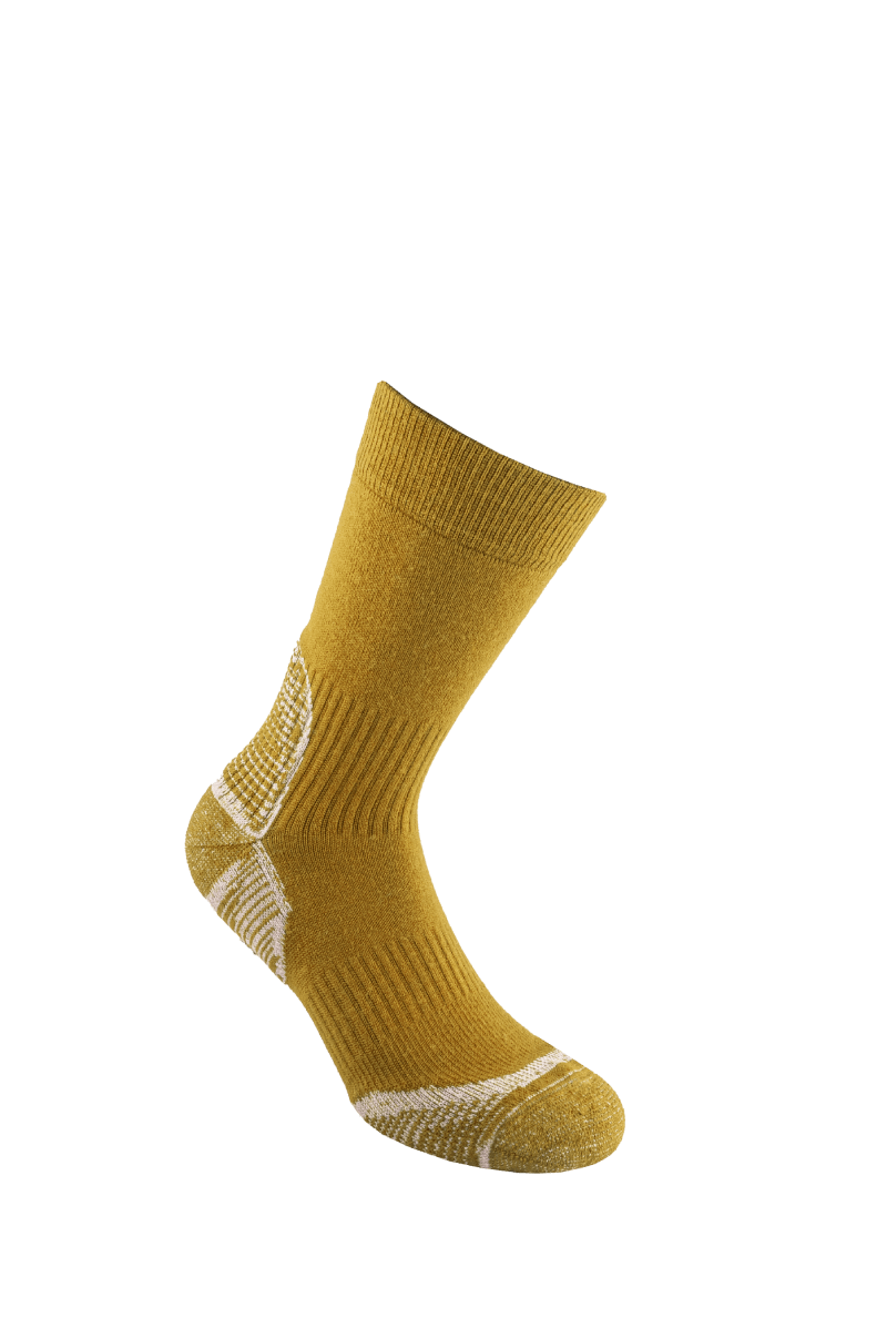 Calza donna da trekking 4 stagioni versatile e confortevole: avvolge il piede e la gamba con un morbidissimo filato di lana vergine merino fine assicurando il giusto comfort termico. Il supporto elastico per la caviglia e l‘arco plantare assicurano una buona stabilità evitando la formazione di pieghe. L‘imbottitura sul tallone e sulla zona delle dita rende ammortizza la camminata sia in salita che in discesa. L’esterno della calza è schermato con un filato che la protegge da abrasioni e sfregamenti.